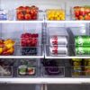 Munfix Set Of 16 Refrigerator Organizer Bins – Plastic Pantry Organization and Storage Baskets – Stackable Food Fridge Organizers with Cutout Handles for Freezer, Kitchen, Countertops, Cabinets
