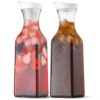 RIGHT SIZE & NICE CONSTRUCTION: Comes with 2 pcs in the set and each carafe has a nice size of 11.5” in height to fit in your refrigerator or under your cabinets. Square body and narrow neck for easy gripping, the balanced construction easily remains it upright on tabletops and wide mouth for adding ice cubes, fruits and tea bags. 50 oz in capacity is the optimum feature for daily essentials, picnic carry, and party use.