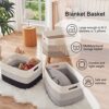 Decorative Blanket Storage for Living Room:This rectangular blanket basket is more stable and easier to restore its sahpe after you receive the package. The 21.7’’ x 16.9’’ x 11.8’’ large storage basket can also used to store blankets, pillows, cushions, toys, clothes and towels.