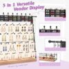 [5 IN 1 VERSATILE VENDOR DISPLAY] Unlike other jewelry display for selling —only display earring cards, with limited functions. We have designed a multi-functional display rack, this rack contains 5 units: earring card/ring/necklace/earring display with rustic wooden base, Such a rich and colourful jewellery display will surely impress potential buyers!
