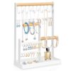 Jewelry Organizer Stand: This Jewelry Rack Organizer comes with 5 tiers of 36-hole earring racks, 10 unique necklace display racks and 2 bracelet rack 1 ring with watch tray, abundant Storage Space for your necklaces, earrings, rings, bracelets, watches, hair clips and other small accessories.