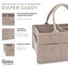 REMOVABLE ORGANIZER INSERT – Remove the diaper organizer insert to use as a toy storage bin, baby hamper or nursery basket for additional nursery storage. Our lightweight, portable diaper caddy is 13 x 9 x 7″ (Regular Size) and made of soft felt and features sturdy outer pockets for additional baby storage.
