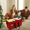 Phedrew Large Christmas Ornament Storage Container Box, Fits up to 128 Ornaments, Holiday Xmas Ornaments Box with Zipper Closure(Red and Black)
