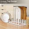 The boot rack with a unique metal design can accommodate up to 6 pairs of boots. It will keep your boots upside-down which can reduce slouchy or creased boot shafts. This free standing shoe racks provides you with a perfect storage solution for boots and reduces damage.