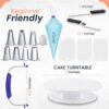 COMPLETE CAKE DECORATING TOOLS: ONLY cake tools set including everything you need to start decorating Cakes like a PRO, 11 Inch Cake Turntable for decorating, 7 Icing Tips, 11 Inch Straight and Angled Icing Spatula, cake leveler & Slicer, 20 Disposable Bags, 3 Cake Scrapers Icing Smoother Set, EBOOK User Guide for beginners