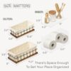 2 SIZES: This set of decorative baskets for bathroom comes in two sizes. The smaller size measures 9.5″ х 4.8″ x 3.2″ and the bigger size is 11.2″ x 6″ x 3.9″