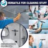 ERGONOMIC HANDLE & ADHESIVE STORING HOLDER: The shape of the handle design is effortless and comfortable for hand to grip and will not slip off even you use strength to clean. The attached holder is for easy-storage after each use, just choose the right place to install the holder and hang the squeegee on, don’t have to find anywhere else to put your tool.