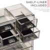 DURABLE & LONG-LASTING – Made of durable acrylic-like clear plastic – Includes 3 large drawers, 4 small drawers and 16 slot compartments – Drawers slide open smoothly with easy grip handles – Can also be used to complement other organizers by Sorbus – Measures approximately 9.25” L x 6.25” W x 14.25” H (drawers 1.87” deep)