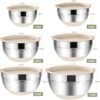 Umite Chef Mixing Bowls with Airtight Lids, 6 piece Stainless Steel Metal Nesting Storage Bowls, Non-Slip Bottoms Size 7, 3.5, 2.5, 2.0,1.5, 1QT, Great for Mixing & Serving (Khaki)