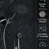 Veken 12 Inch High Pressure Rain Shower Head Combo with Extension Arm- Wide Rainfall Showerhead with 5 Handheld Water Spray – Adjustable Dual Showerhead with Anti-Clog Nozzles – Silver Chrome