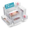 Vtopmart 72 PCS Clear Plastic Drawer Organizers Set, 4-Size Versatile Bathroom and Vanity Drawer Organizer Trays, Non-Slip Storage Bins for Makeup, Jewelries, Kitchen Utensils and Office Desk