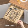 【Upgrade Your Kitchen】Hold all your kitchen utensils, cutlery and flatware invisible in drawer. This wood silverware drawer organizer has 5-9 large compartments and suitable for application of multiple items in multiple occasions.