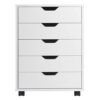 Use the Winsome Wood Halifax 5-Drawer Cabinet to help stay organized. A clean, simple design that you will find function to in just about any room of your home. Eliminate the appearance of clutter in your craft room, kitchen or kids’ room. The Halifax storage carts feature a multitude of drawers with cutout drawer pulls that allow for easy-open access and helps create an easily accessible storage unit. Store paper and other material used for a business in your in-home office or den. Sitting on four casters, two of which lock, allowing for easy mobility when needing to move or locking in place to use as a stationary. With a vertical design that helps to minimize the need for a lot of floor space, making this an ideal unit for a walk-in closet; store your jewelry, styling accessories, makeup pallet and brushes. Easy glide drawers with an interior dimension of 15.9”W x 11.73”D x 2.55”H and a weight capacity of 20lbs each. Finished in white and constructed of a combination of sturdy solid beech wood and some composite. For additional storage, pair with other organizers from the Winsome Halifax collection. Conveniently packed and shipped in 1 box, that includes the hardware necessary for assembling. Replacement part request can be submitted directly to the manufacturer within 60 days from date of purchase