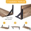 👍【Varied Floating Shelves】- Let‘s use our creativity and imagination! The uniquely designed matte surface metal triangular bracket can be installed on the top or bottom of the shelf. The two types of brackets and 4 paulownia wood shelves can produce a variety of combinations, such as 2+2, 1+2+1, 1+1+1+1 etc.