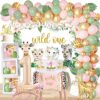 YSHMFEUX Wild one Birthday Decorations Supplies for Girl, 1st Birthday Girl Decorations, Jungle Safari Animal 1st Birthday Party Supplies, First Birthday Decorations for Girls