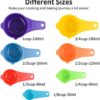 PLASTIC MEASURING CUPS AND SPOONS SE 15: 7 measuring cups: 1/8CUP-30ML;1/4CUP-60ML;1/3CUP-80ML1/2 CUP-120ML; 2/3 CUP-160ML;3/4 CUP-180ML; 1CUP-240ML; 7 spice plastic measuring spoons:1/8tsp-0.63ML;1/4tsp-1.25M;1/2 tsp-2.5ML;3/4 tsp-3.75ML1tsp-5ML;1/2tbsp-7.5ML; 1tbsp-15ML;1 X Leveler.