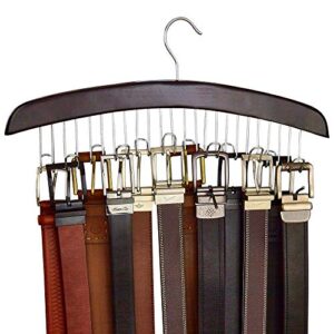 Richards Belt Hanger Organizer for Closet – Belt Holder Rack Storage Dispaly with 12 Hooks, Wood and Chrome Accents (Dark Walnut)