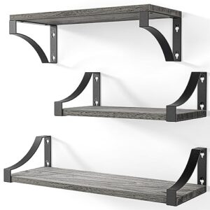 AMADA HOMEFURNISHING Wall Shelves Set of 3, Floating Shelves for Bedroom Decor, Hold up to 55lbs, Rustic Wood Wall Shelves for Bedroom, Bathroom, Living Room, Kitchen, Storage & Decoration, Gray