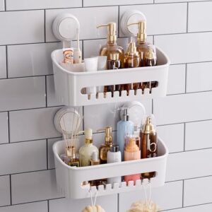 TAILI Suction Shower Caddy 2 Pack, Bathroom Shower Basket Wall Mounted Organizer Shelf for Shampoo, Body Wash, Conditioner, Plastic Shower Rack for Kitchen & Bathroom, Drill-Free Removable