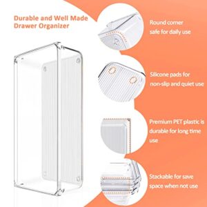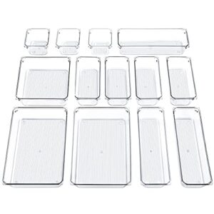 GOGOODA 13 PCS Clear Plastic Drawer Organizer Set, 5 Size Vanity Organizer Trays with Non-Slip Pads, Multi-use Organizing Bins for Kitchen, Bedroom, Bathroom, Office, Utensils, Makeup, Jewellery