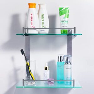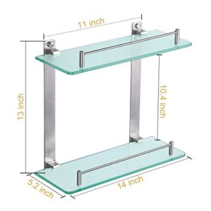 HOMEIDEAS 2-Tier Bathroom Glass Shelf – 14 Inch Thick Tempered Glass, Wall Mounted Brushed Nickel Shelf – Rustproof SUS 304 Stainless Steel Frosted Glass Shelf