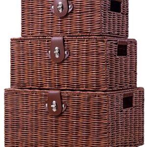Homepeaz Set of 3 Woven Wicker Basket Box with Lid & Lock, Built-in Carry Handles, Multifunctional Storage Organiser for Nursery, Baby, Clothes, Toys, Books, Large/Medium/Small Size (Natural)