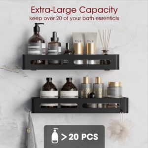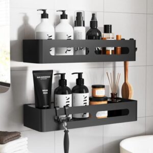 Sakugi Shower Caddy – Large Adhesive Shower Organizer, Rustproof Shower Shelves for inside Shower, Stainless Steel Shower Rack for Bathroom, Home Decor, No Drill, Black, 2 Pack